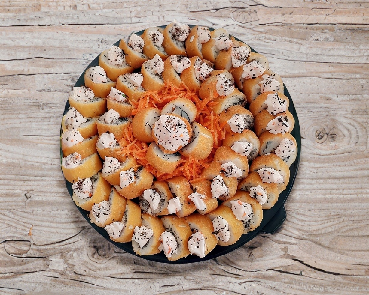 10 rebanadas - Por dentro: filadelfia, pepino, zanahoria y surimi. Por fuera: empanizado.