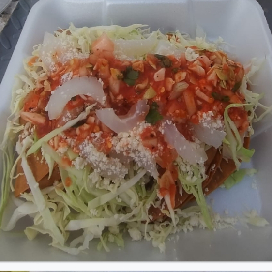 5 piezas de papa, col, jugo de jitomate, cueritos y salsa extra picante