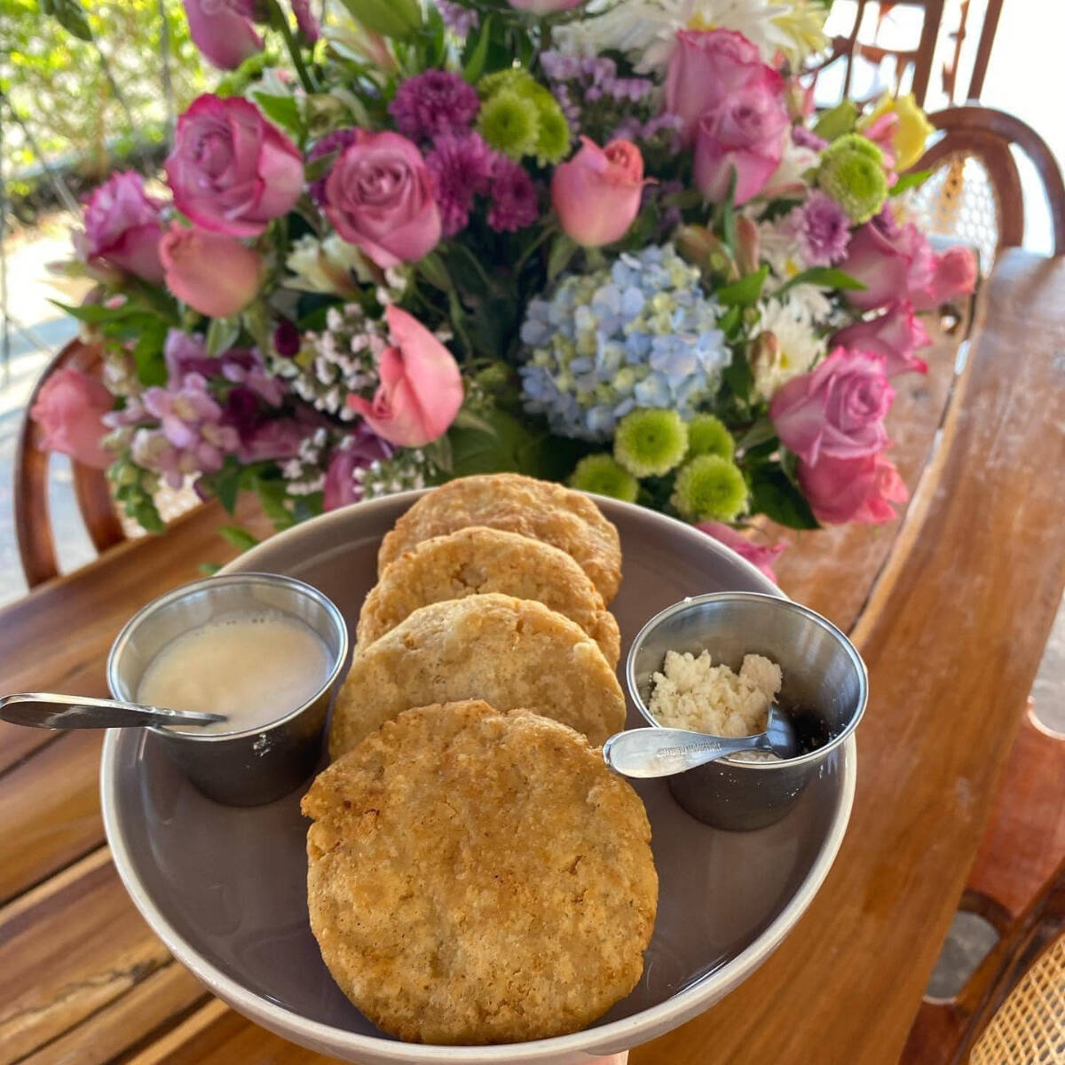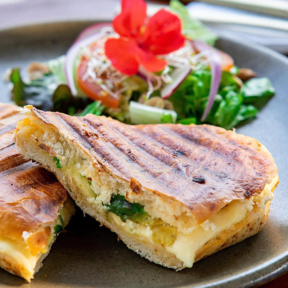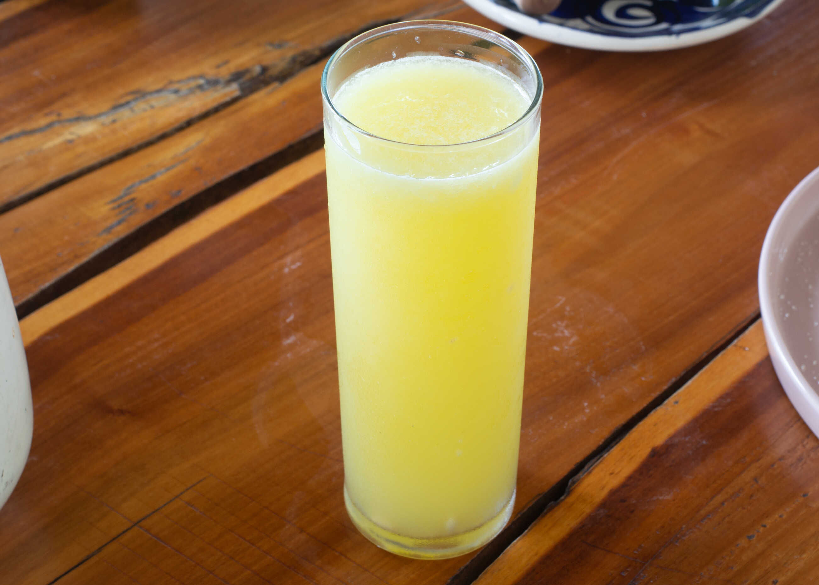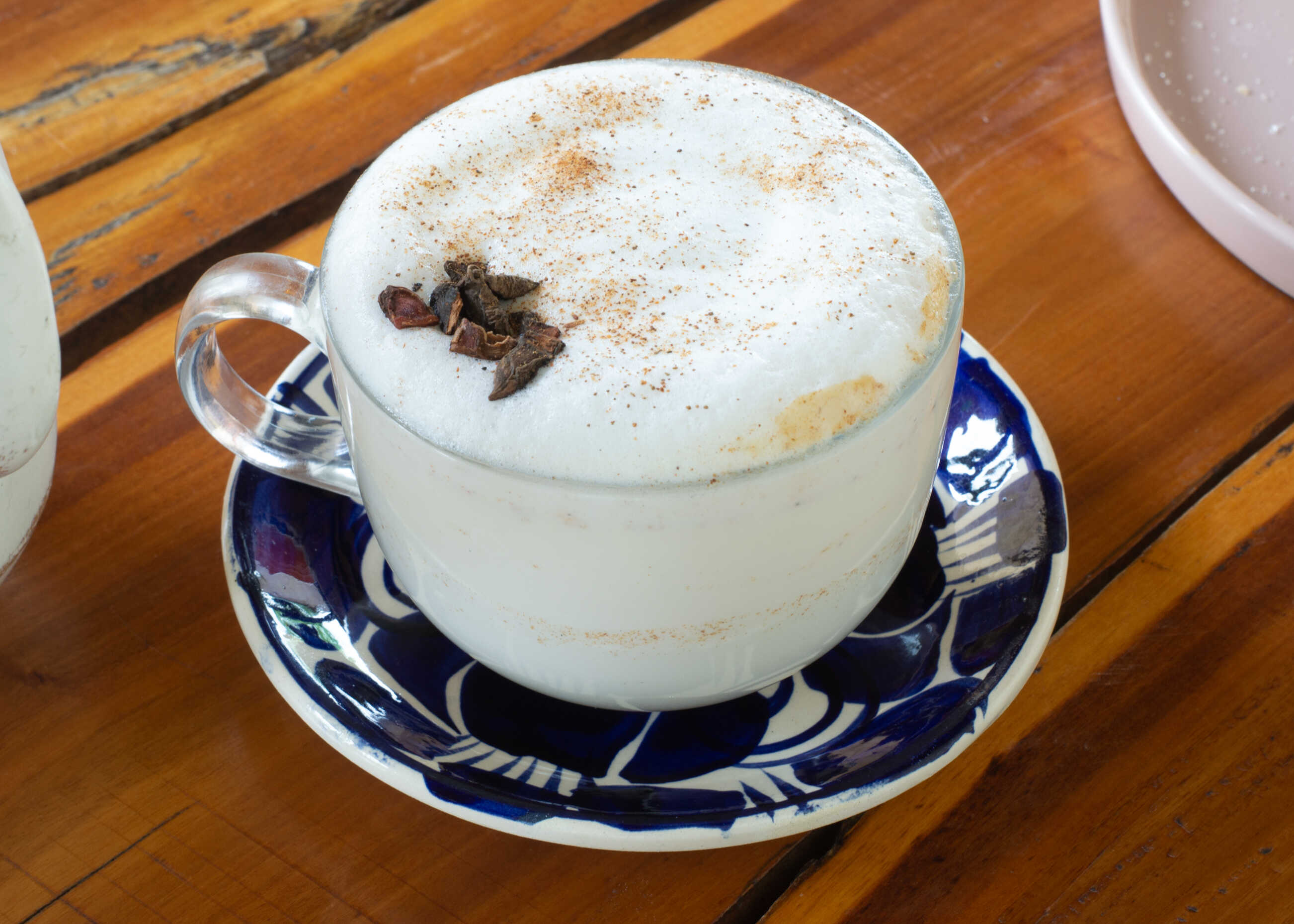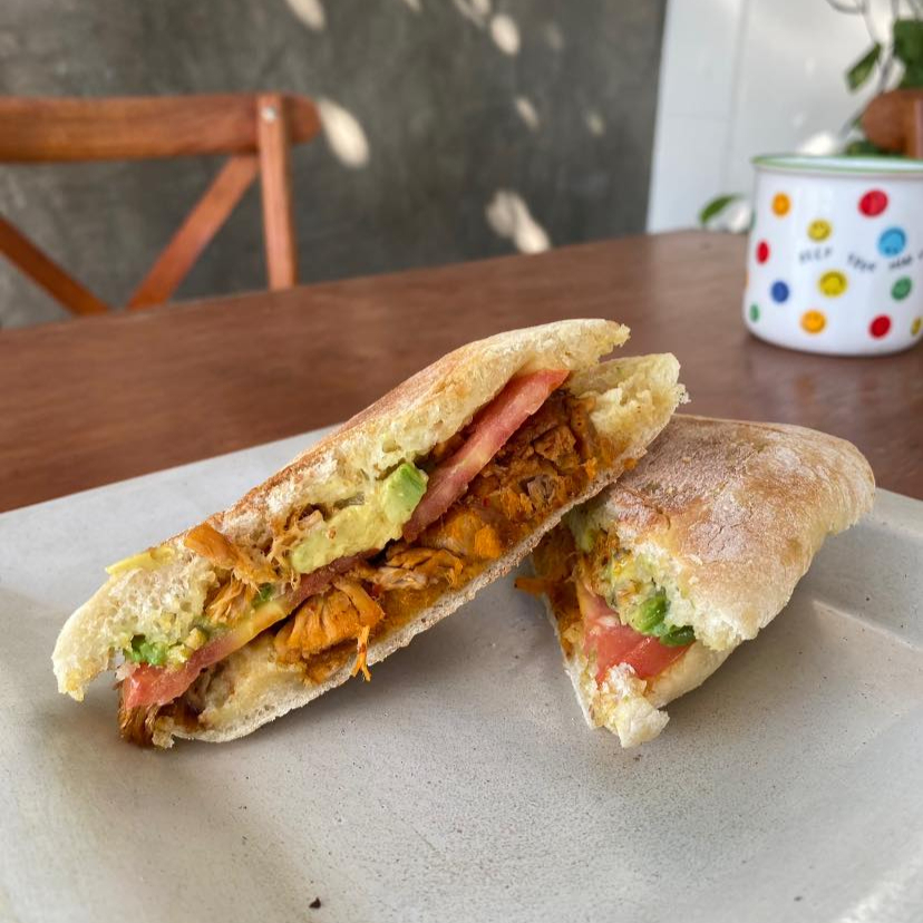 Pollo deshebrado aderezado con guajillo, elote y queso adobera.