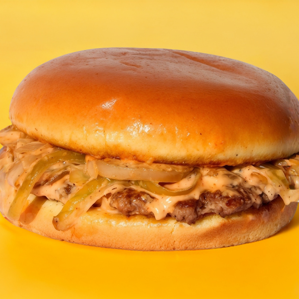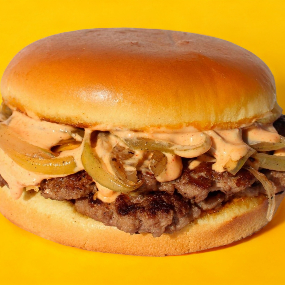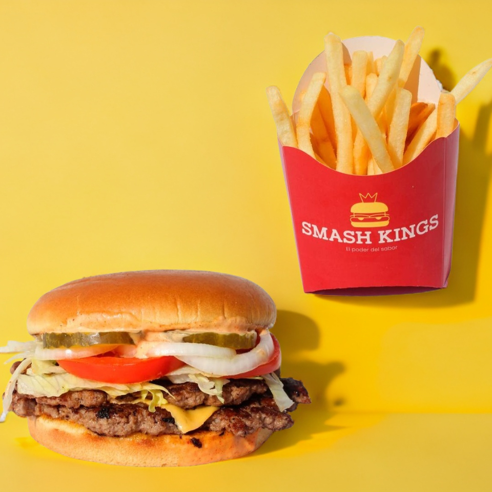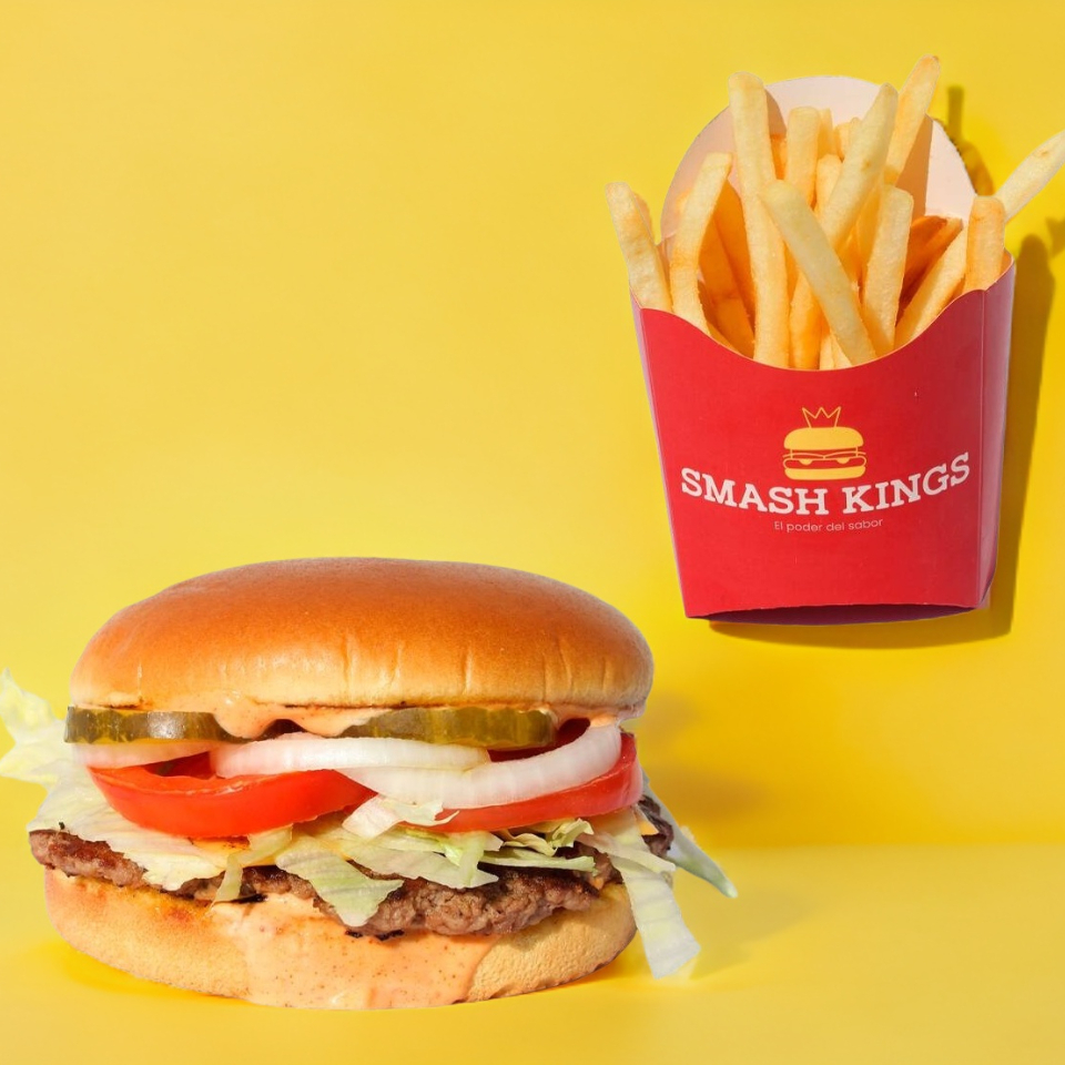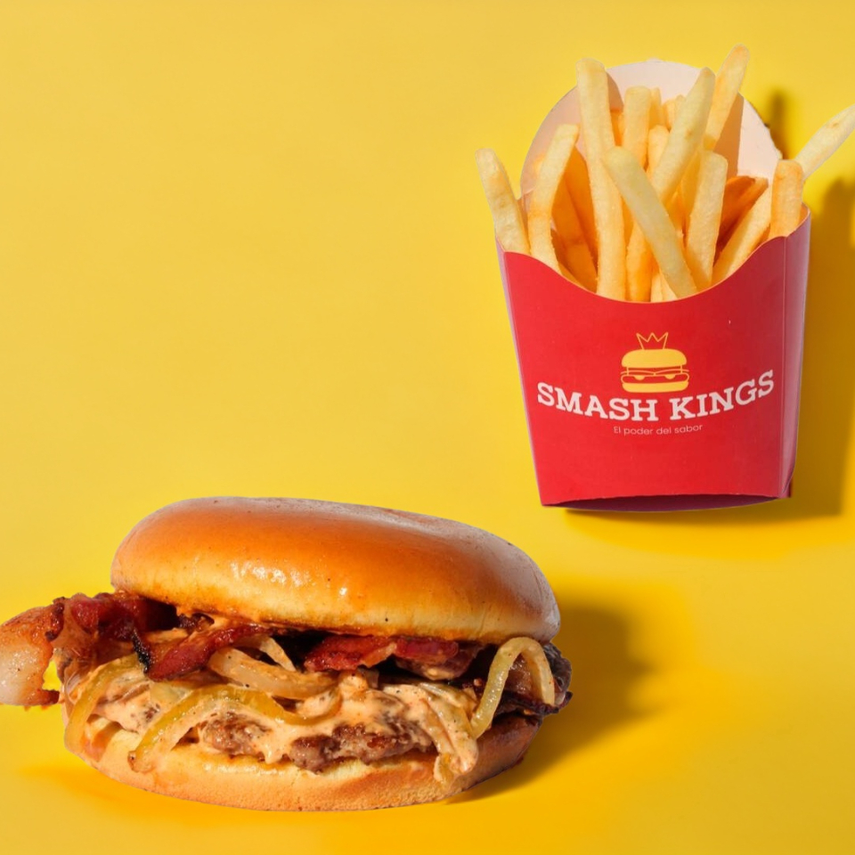 King's classic, preparada con 2 carnes al estilo smash, donde la carne se presiona en la plancha para lograr una costra dorada y crujiente por fuera, manteniéndose jugosa y llena de sabor por dentro. Acompañada de cebolla caramelizada y puedes elegir entre nuestro aderezo secreto original o sweet, ambos creados para elevar cada bocado.