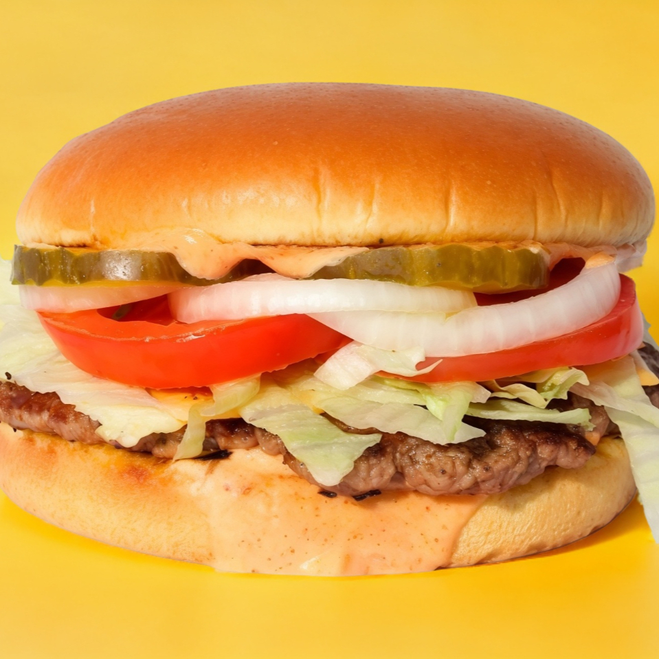 King's Deluxe, preparada con 2 carnes al estilo smash, donde la carne se presiona en la plancha para lograr una costra dorada y crujiente, manteniéndose jugosa y llena de sabor por dentro. Acompañada de lechuga fresca, jitomate jugoso, cebolla cruda y pepinillos que le dan el equilibrio perfecto entre frescura y crocancia. Además, puedes elegir entre nuestro aderezo secreto Original o Sweet.