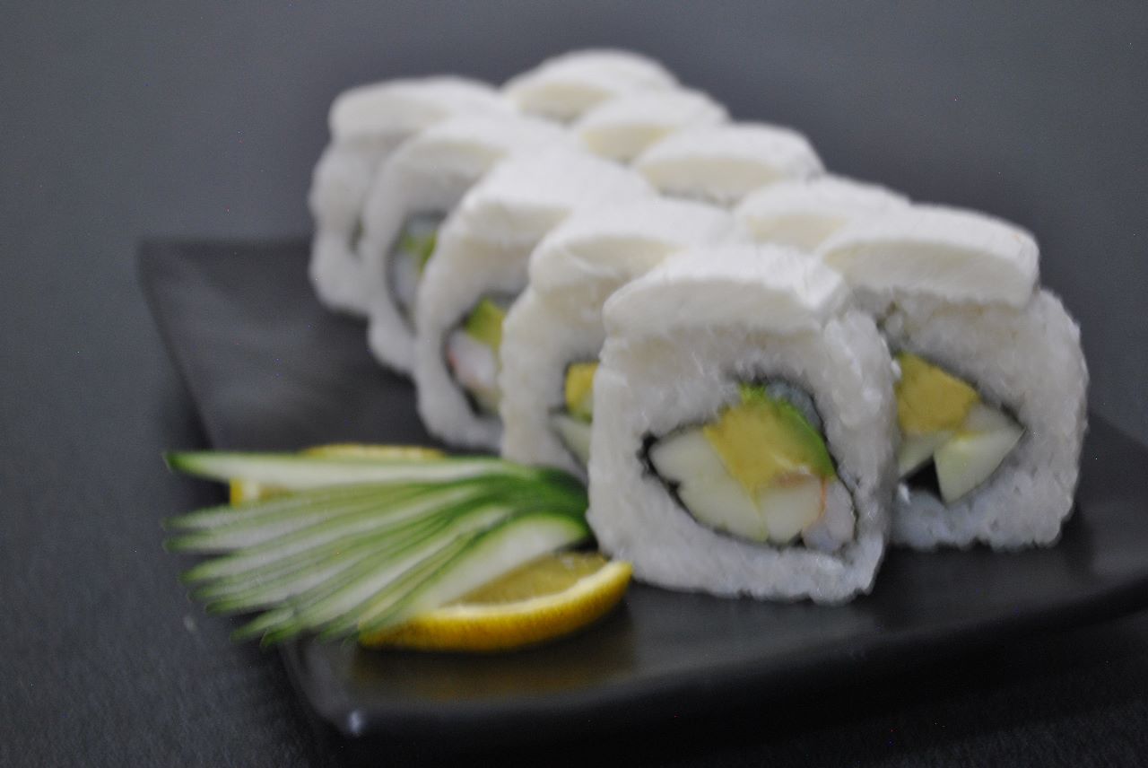 Pepino,aguacate,camarón, por fuera quesocrema