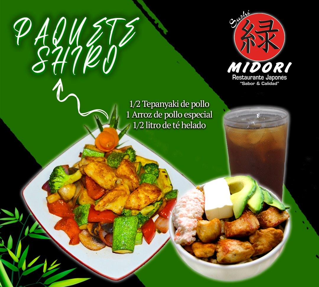 ½ Tepanyaki de pollo, 1 arroz de pollo especial y ½ litro de té.