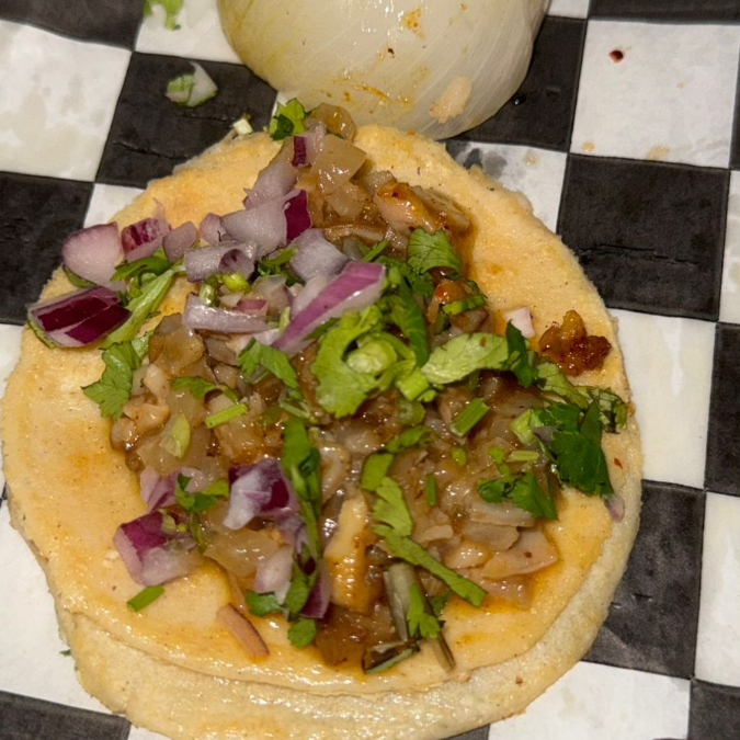 carne a elegir, cilantro, cebolla. incluye salsas, frijoles y lechuga.