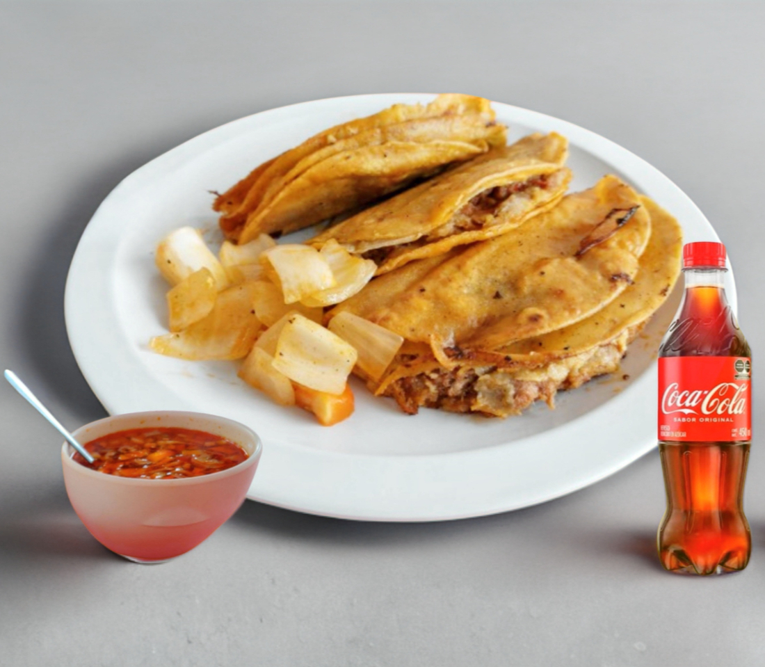 Taco de Barbacoa*3 + Consome*1 + refresco de cola*1