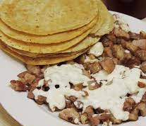 Un platillo individual de chorizo sin queso, aproximadamente 7 taquitos.