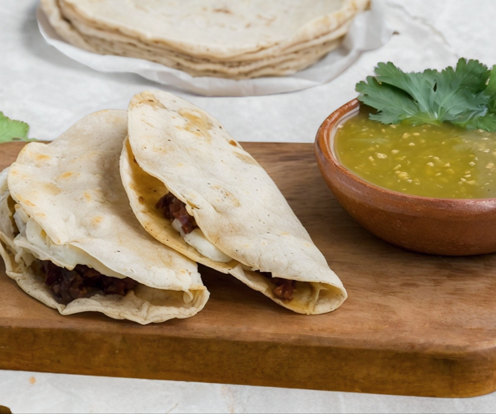 Gringa de pastor con queso elaborada con tortilla de harina.