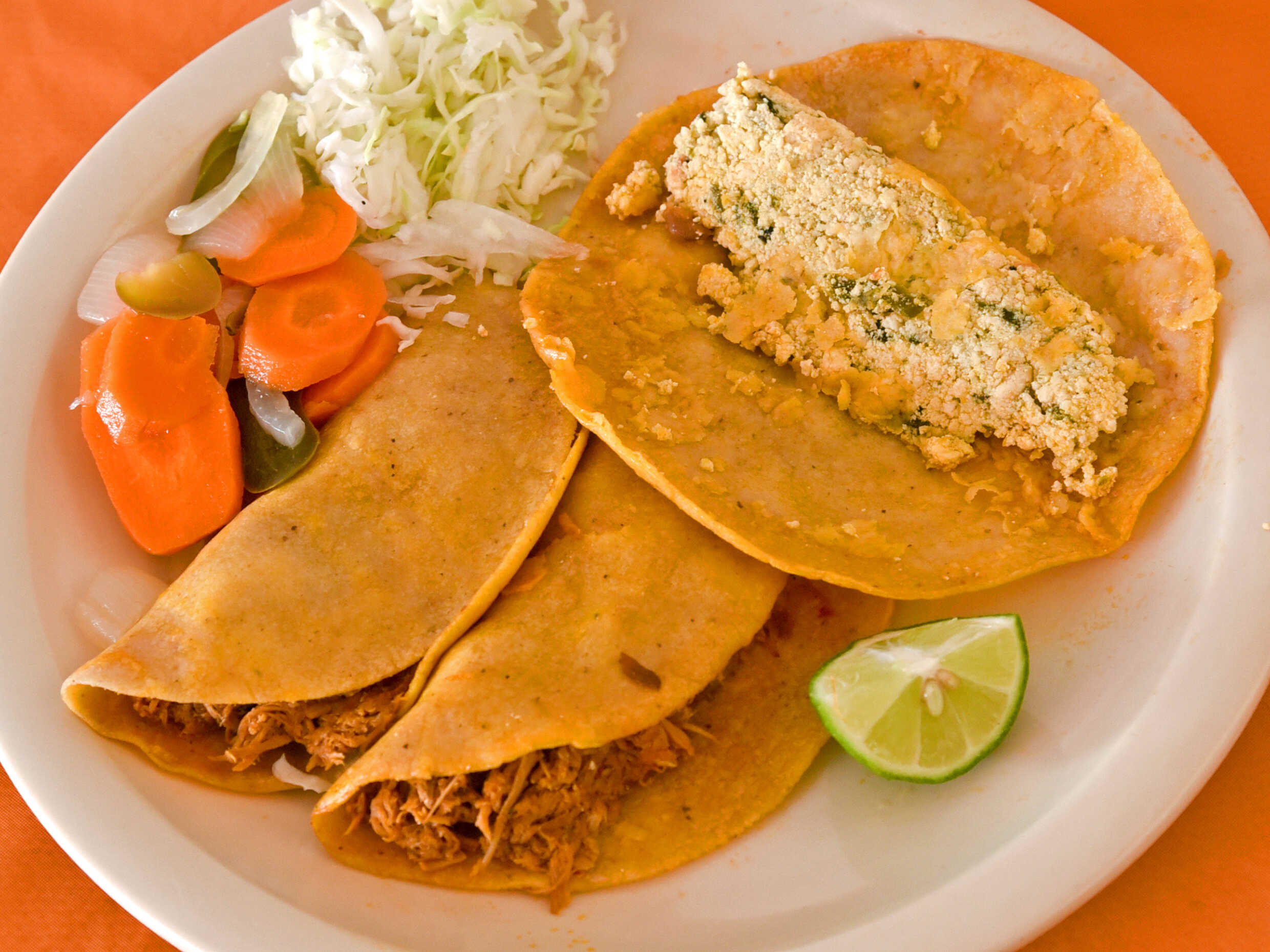 Taco de requesón y rajas salsa a elección del cliente (verde, roja con cilantro y cebolla, ají, tomate y picante)