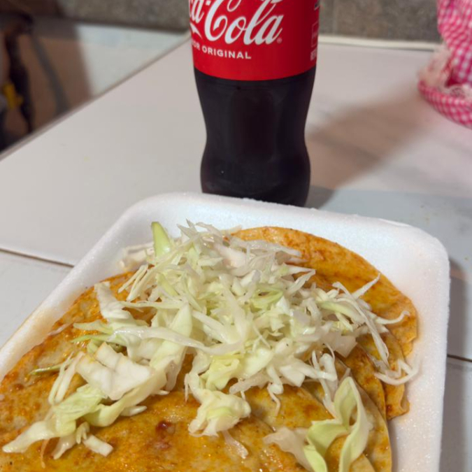 INCLUYE 3 TACOS DE FRIJOL, 3 TACOS DE CARNE, ADICIONALMENTE TRAE SU SALSA PICANTE Y COL