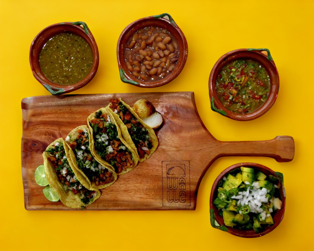 Quesadilla Grande con Carne ( 1 pieza ) + Orden de Doraditas de maíz 3 Piezas , carne de res o de puerco, salsa verde, cilantro y cebolla