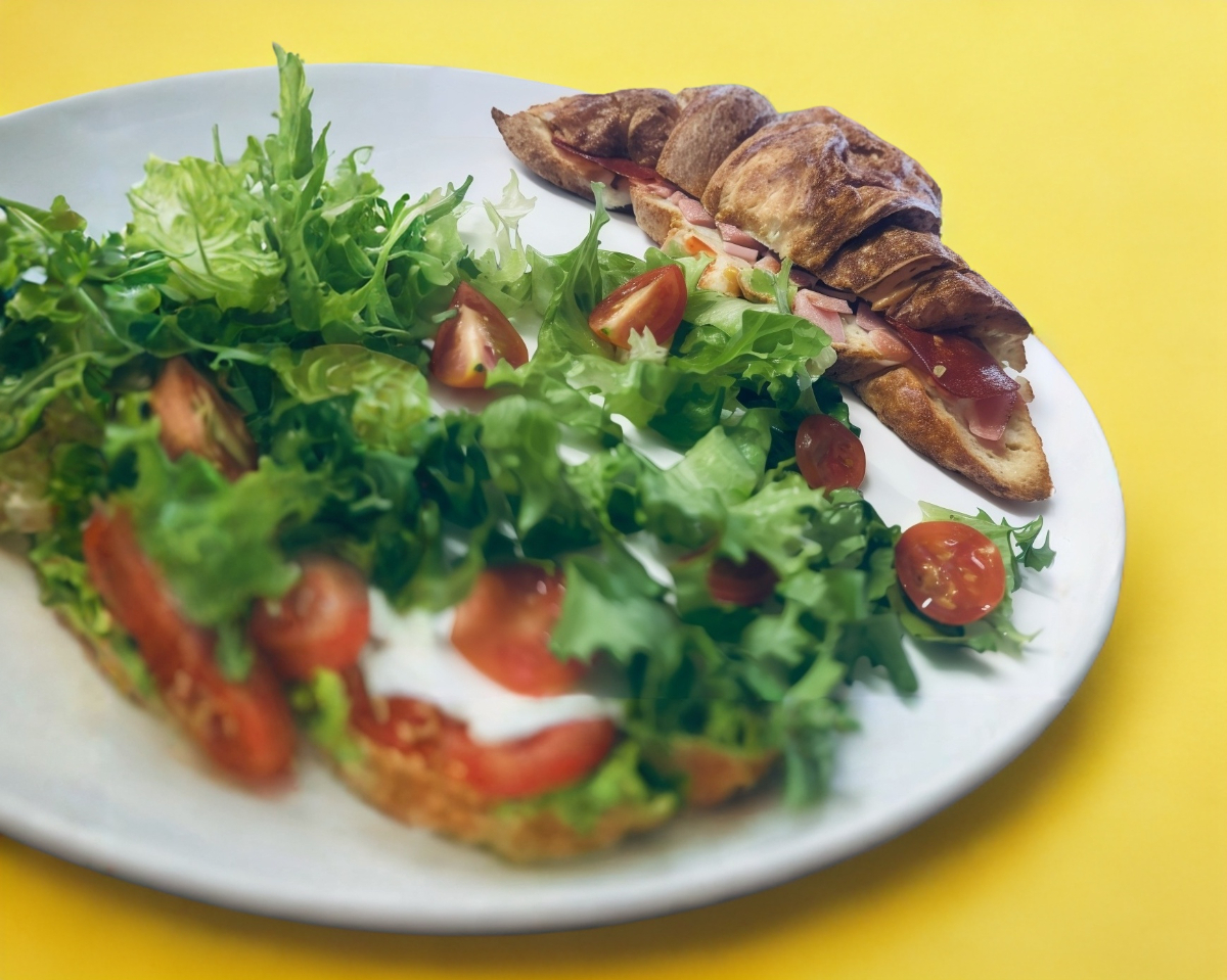 Croissant de jamón, queso, mozzarella y ensalada