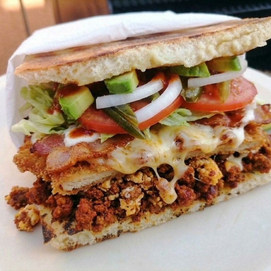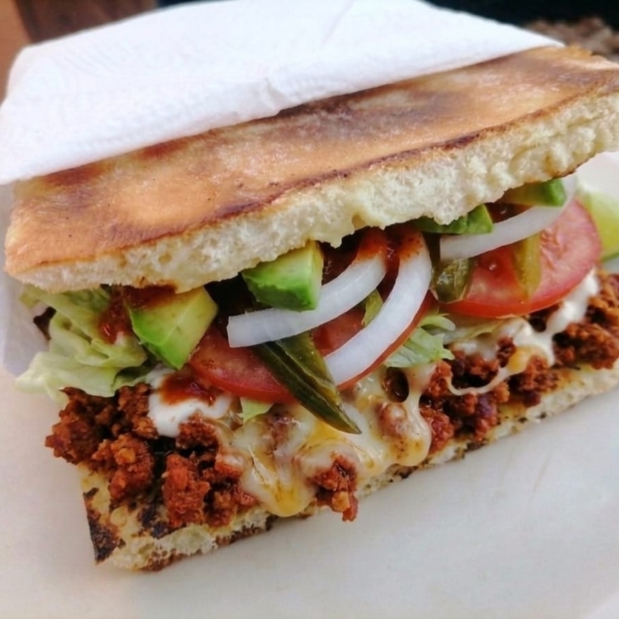 Lomo Adobado y Queso con Pan Vegano