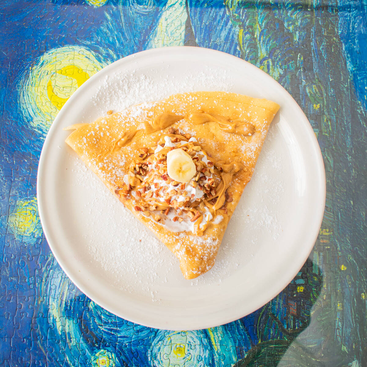 Crepa dulce con dos toppings a elegir y crema batida
