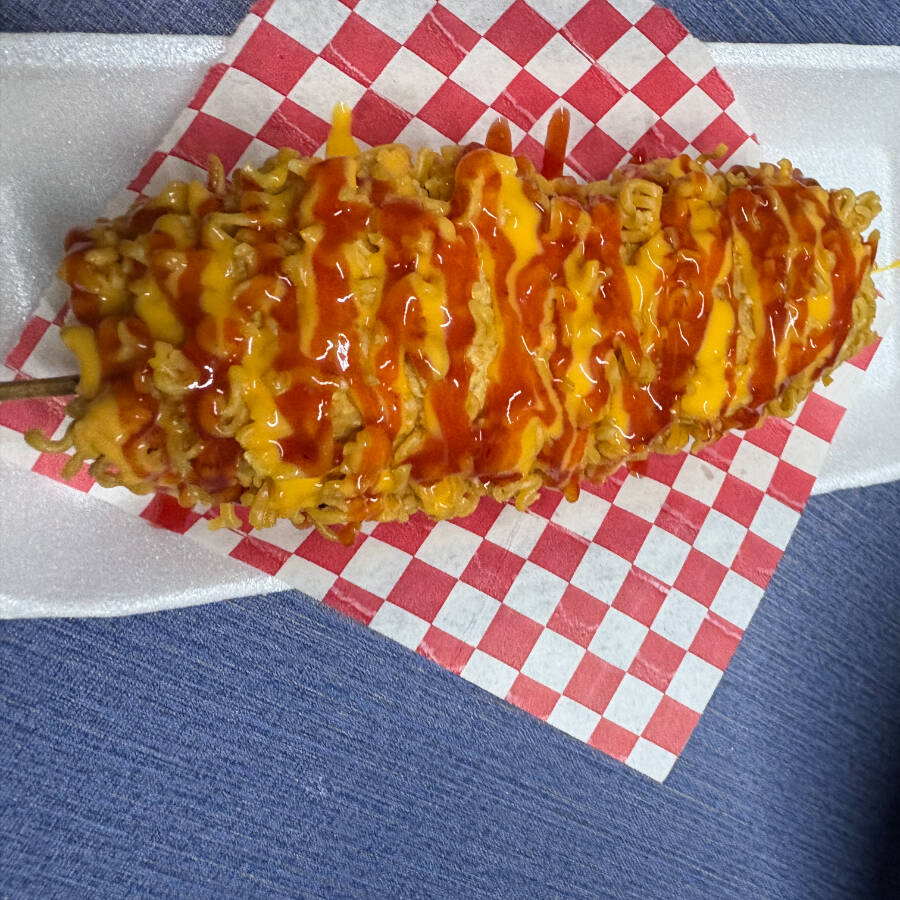 Relleno de Salchicha con Queso y Cubierta de Ramen