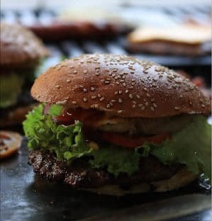 1 Carne al carbón preparada con queso, queso amarillo, tocino, lechuga, jitomate, cebolla, mayonesa, catsup y mostaza