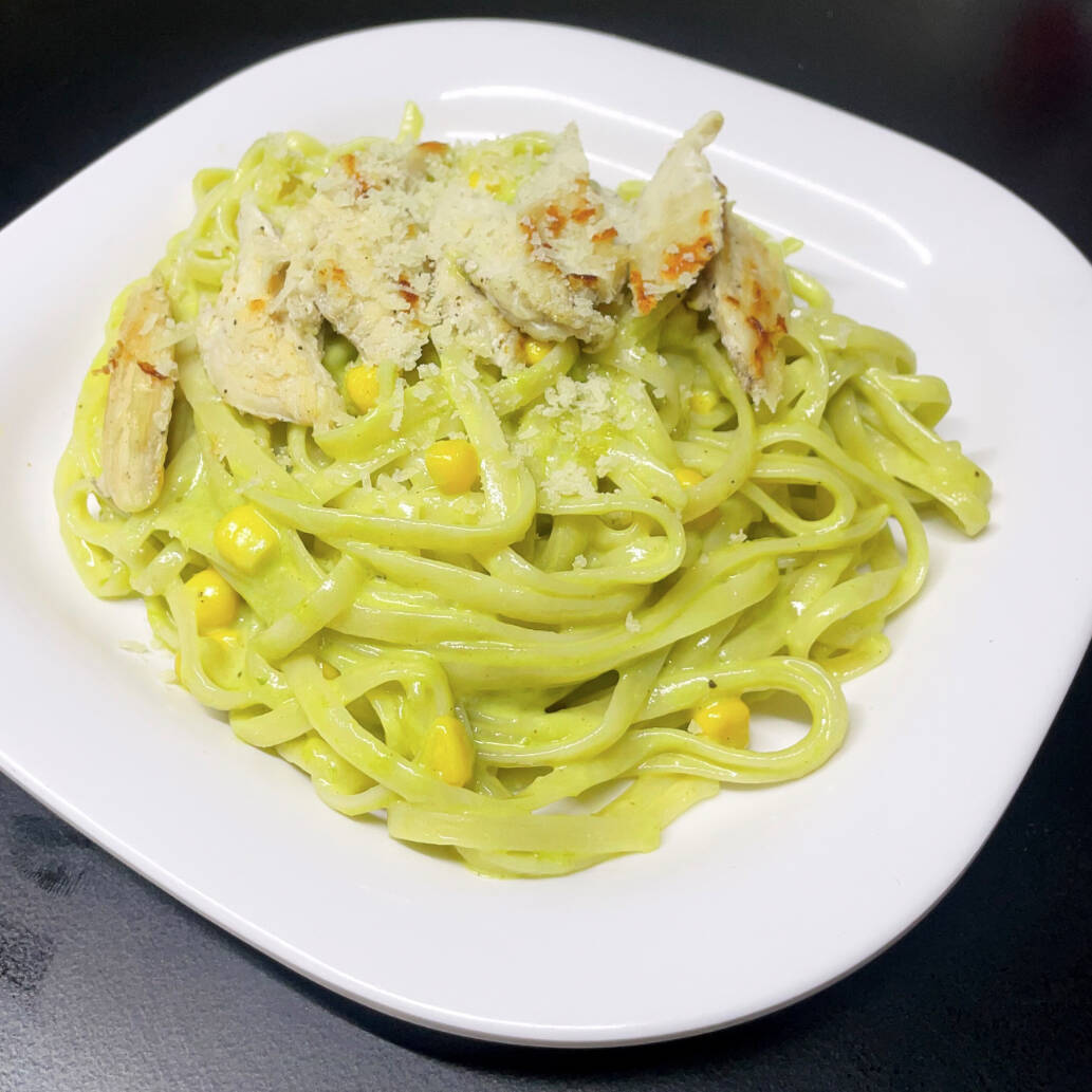 Crema a la poblana con elote, gratinada con parmesano, acompañada de pollo asado y terminada con una lluvia de queso parmesano.