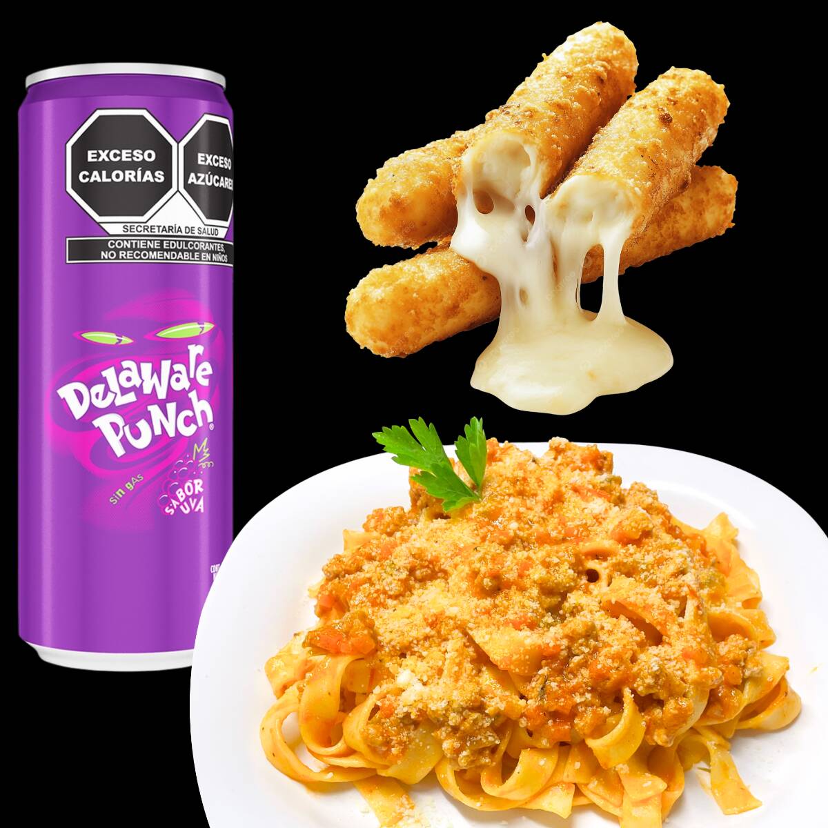 pasta boloñesa + orden de stick de mozzarella y bebida
