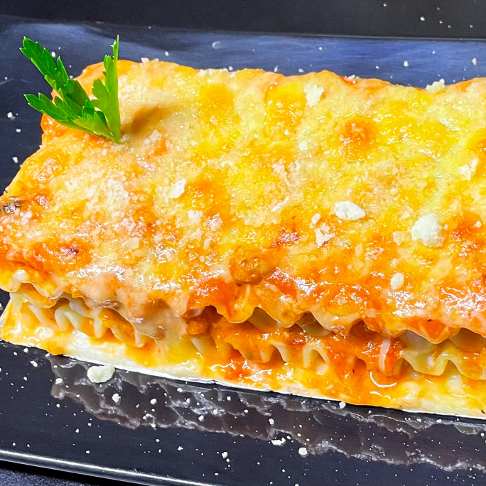 380 gr. lasaña de 4 niveles con carne boloñesa , salsa bechamel y quesos gratinados al horno.