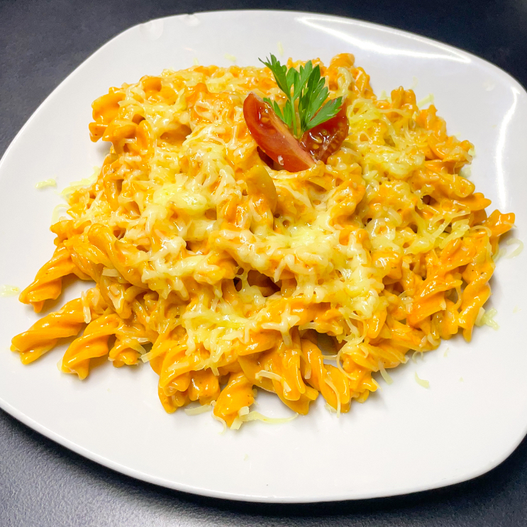 (350gr) Cremosa salsa bechamel con queso crema, gouda, mozzafella y parmesano. Terminada con cherry y parmesano. Se recomienda con fussili, fettuccine o rigatoni