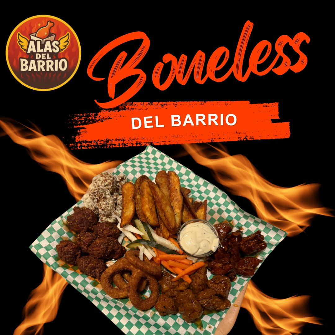 ncluye 500 g de boneless bien jugosos, 5 aros de cebolla, papas gajo crocantes, nuestra ensalada fresca, y puedes elegir hasta 4 salsas diferentes pa’ que le metas sabor a lo grande 😎🔥