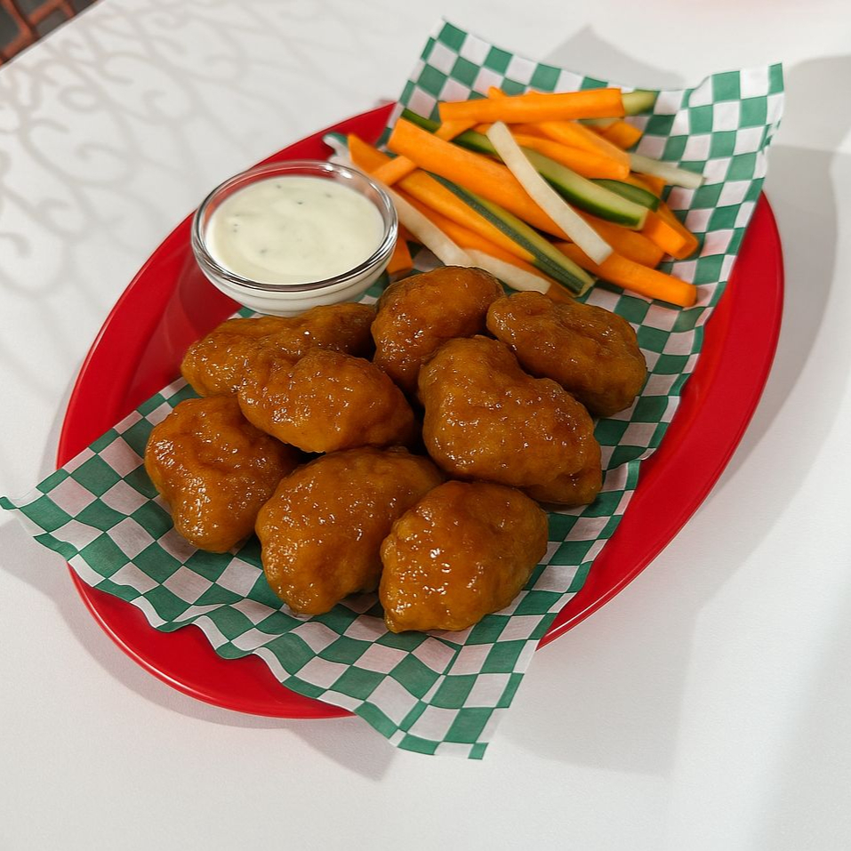 Pa’ los que no quieren hueso, pero sí un chingo de sabor 😎🔥 Cubitos de pechuga bien jugosa, bañados en tu salsa favorita y con ese toque crocante que prende el barrio. Perfectos pa’ la bandita que viene a loquear y botanear sin batallar acompañado con nuestra deliciosa ensalada y aderezo