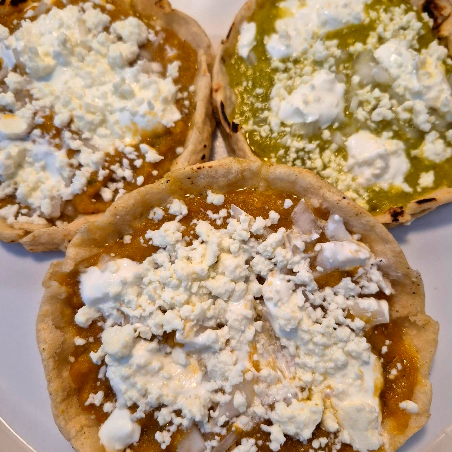 Molida,pollo,papa/chorizo,carne enchilada y queso oaxaca
