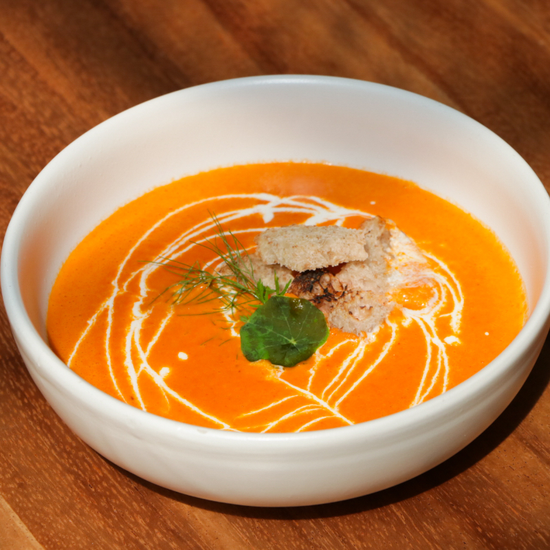 SOPA REMOSA CON QUESO DE CABRA, ACOMPAADA DE GRANOS DE ELOTE