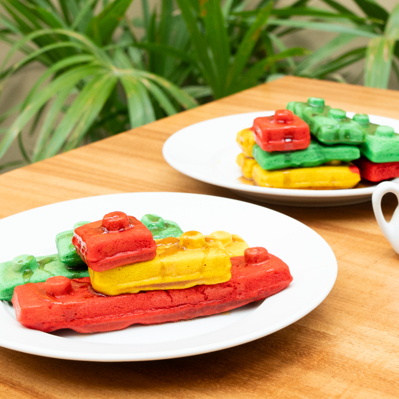 WAFFLES EN FORMA DE BLOQUES DE LEGO CON MIEL MAPLE. PARA JUGAR Y SABOREAR.