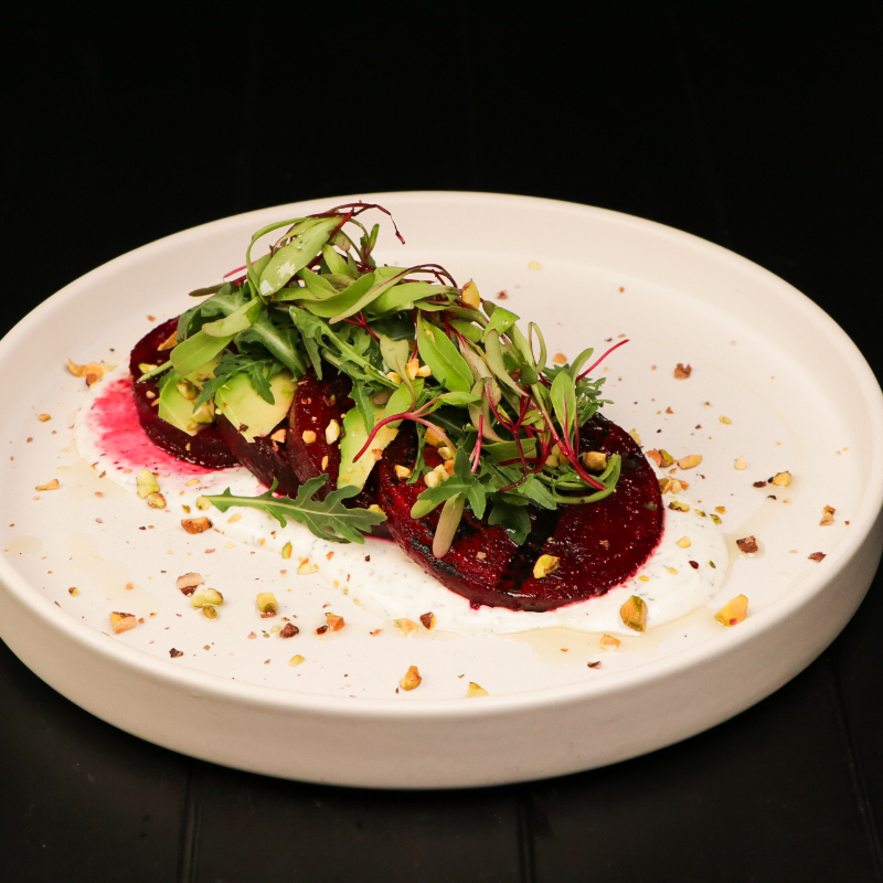 BETBELSRE CAA DE GURT GRIEG AL HINOJO, ARUGULA, AGUACATE Y PISTAC TSTADOS.