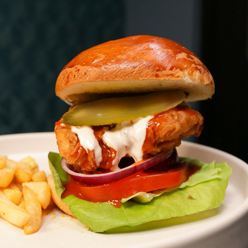 SANDWICH CON JAMON DE PIERNA POLLO, TOCINO FRITO, AGUACATE ESPARRAGO BLANCO, QUESO PANELA Y VEGETALES. ACOMPAÑADO DE PAPAS A LA FRANCESA.