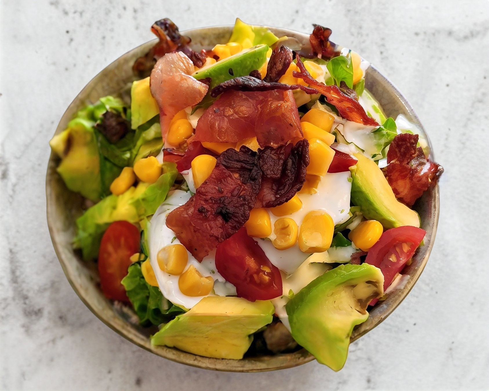 Mix de lechuga,tocino, aguacate, tomate cherry, aderezo ranch (200gr)