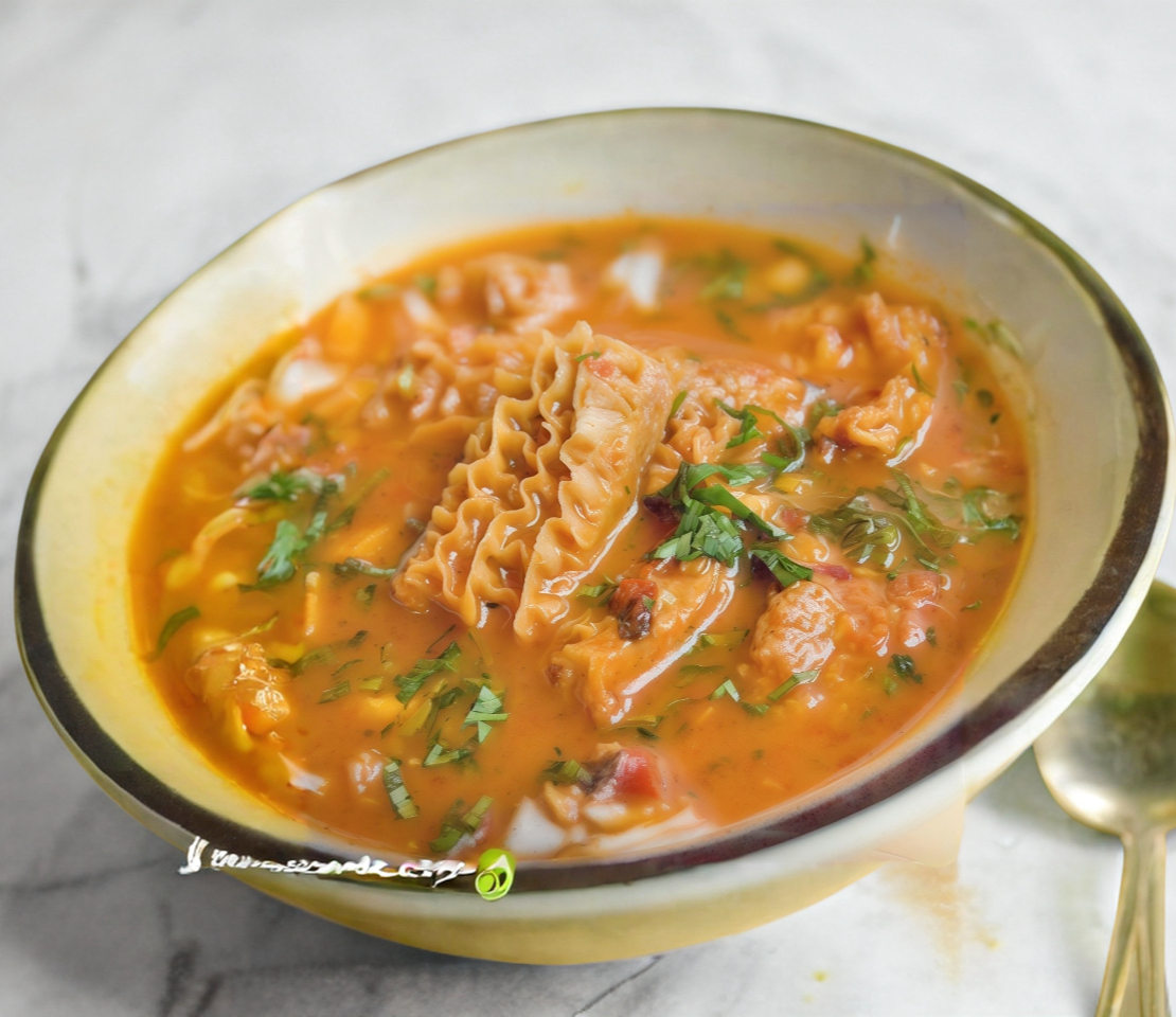 Caldo de panza de res, incluye cebolla, limón y tortillas