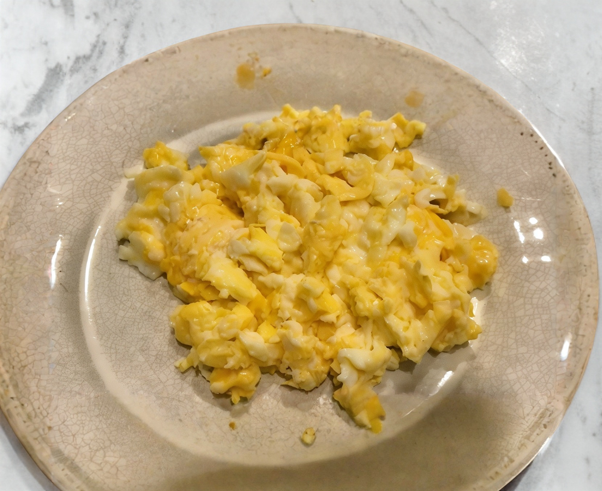 Huevos revueltos 2 pza acompañados de frijoles y tortillas.