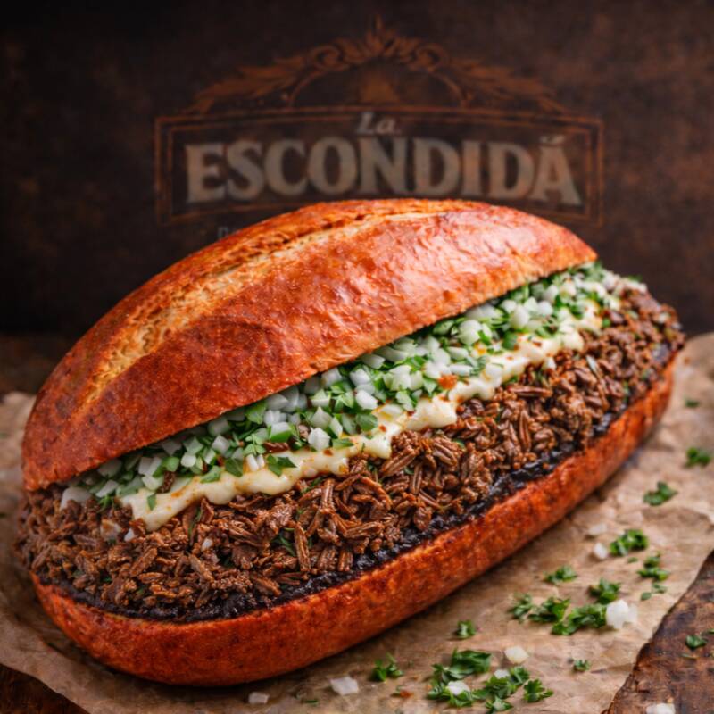 Elaborada con bolillo del día, untado con mayonesa y frijoles refritos, rellena de jugosa birria de res deshebrada. Lleva queso manchego gratinado en la tapa, cilantro y cebolla fresca. Todo va a la plancha para lograr un pan dorado, crujiente y bañado ligeramente con consomé de birria. Se acompaña con limón y salsa al gusto. (PONER EN COMENTARIOS SI LA QUIEREN NATURAL O SIN MAYONESA)