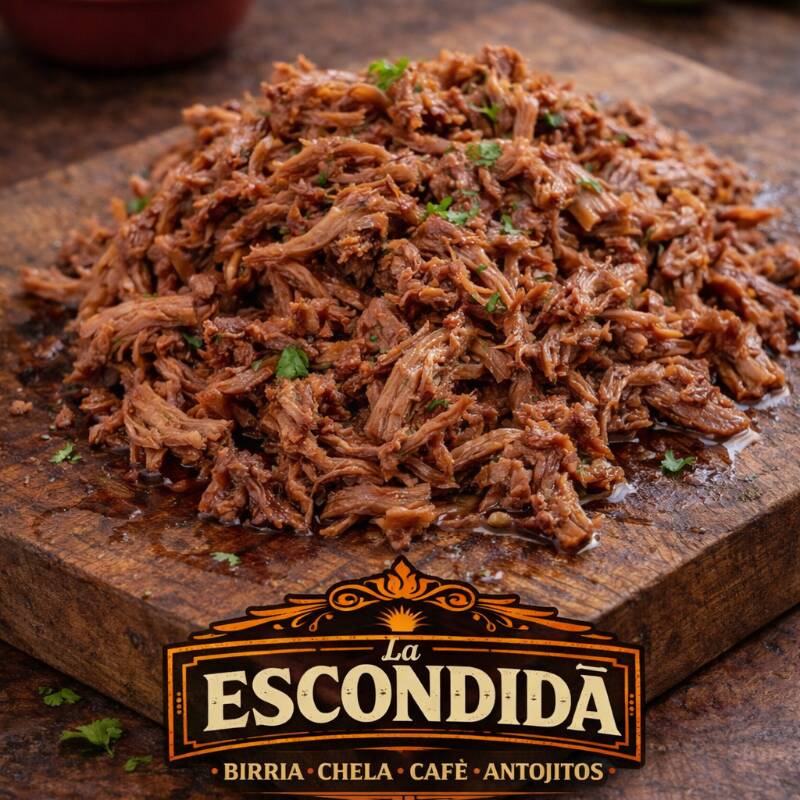 Carne extra de birria de res, jugosa, suave y perfectamente deshebrada. Porción equivalente a aproximadamente 2 tacos (el peso puede variar). Perfecta para potenciar tu consomé, birriamen o cualquier platillo y hacerlo aún más irresistible.
