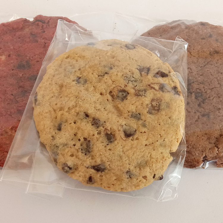 Galleta sabor vainilla, chocolate o red velvet con chispas de chocolate