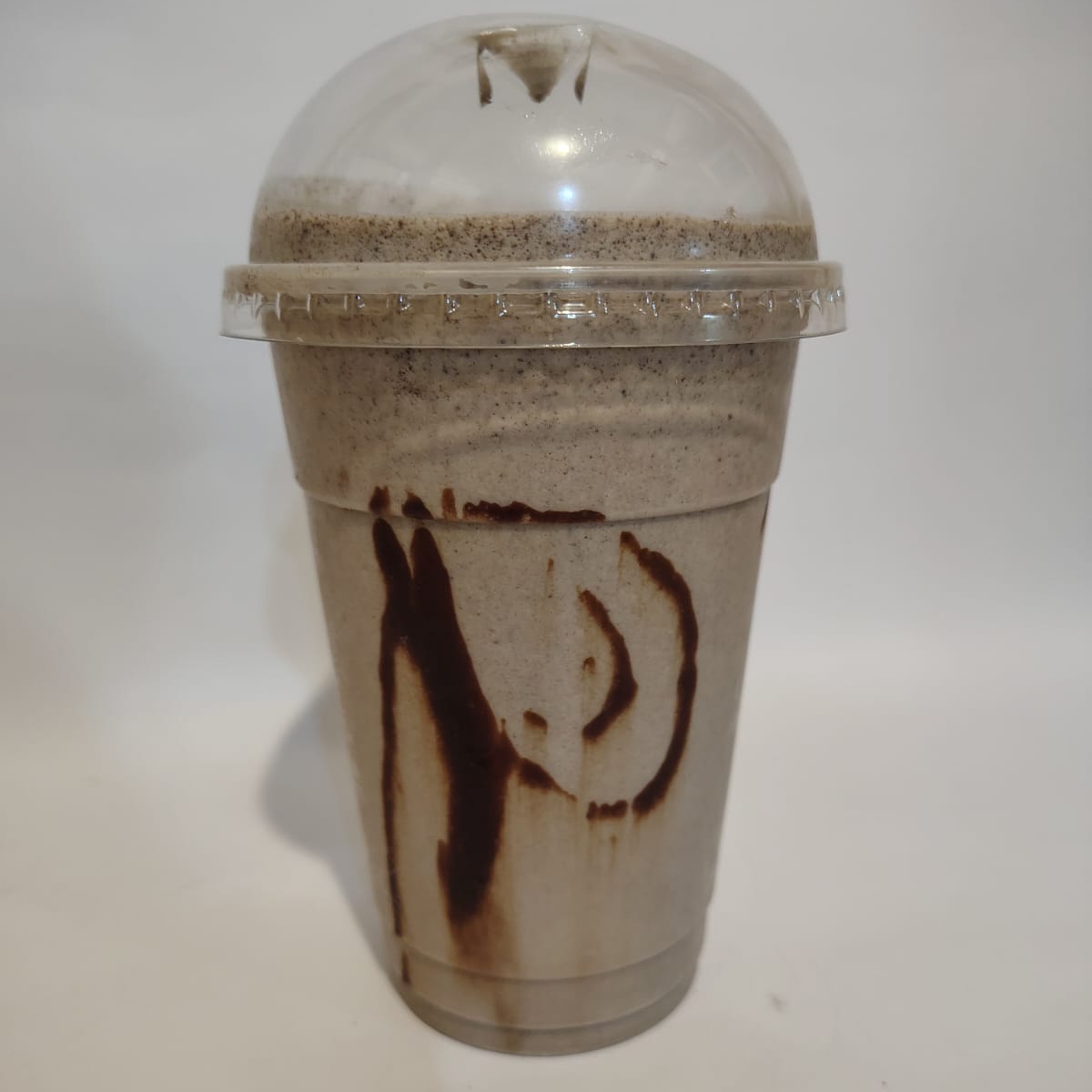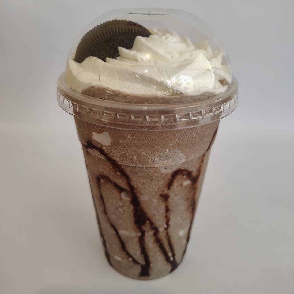 Frappé sabor Cookies deslactosado decorado con crema batida y malvaviscos 475ml