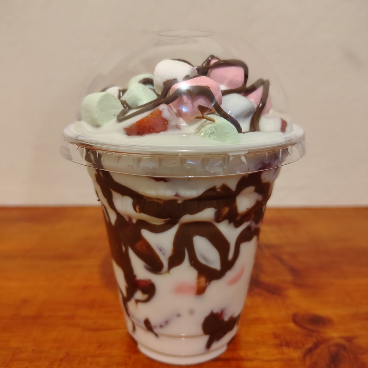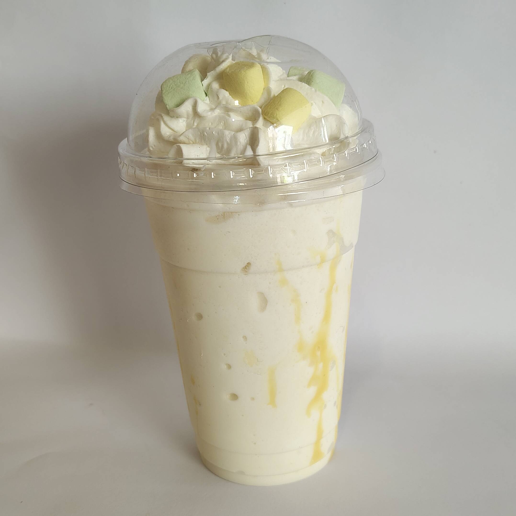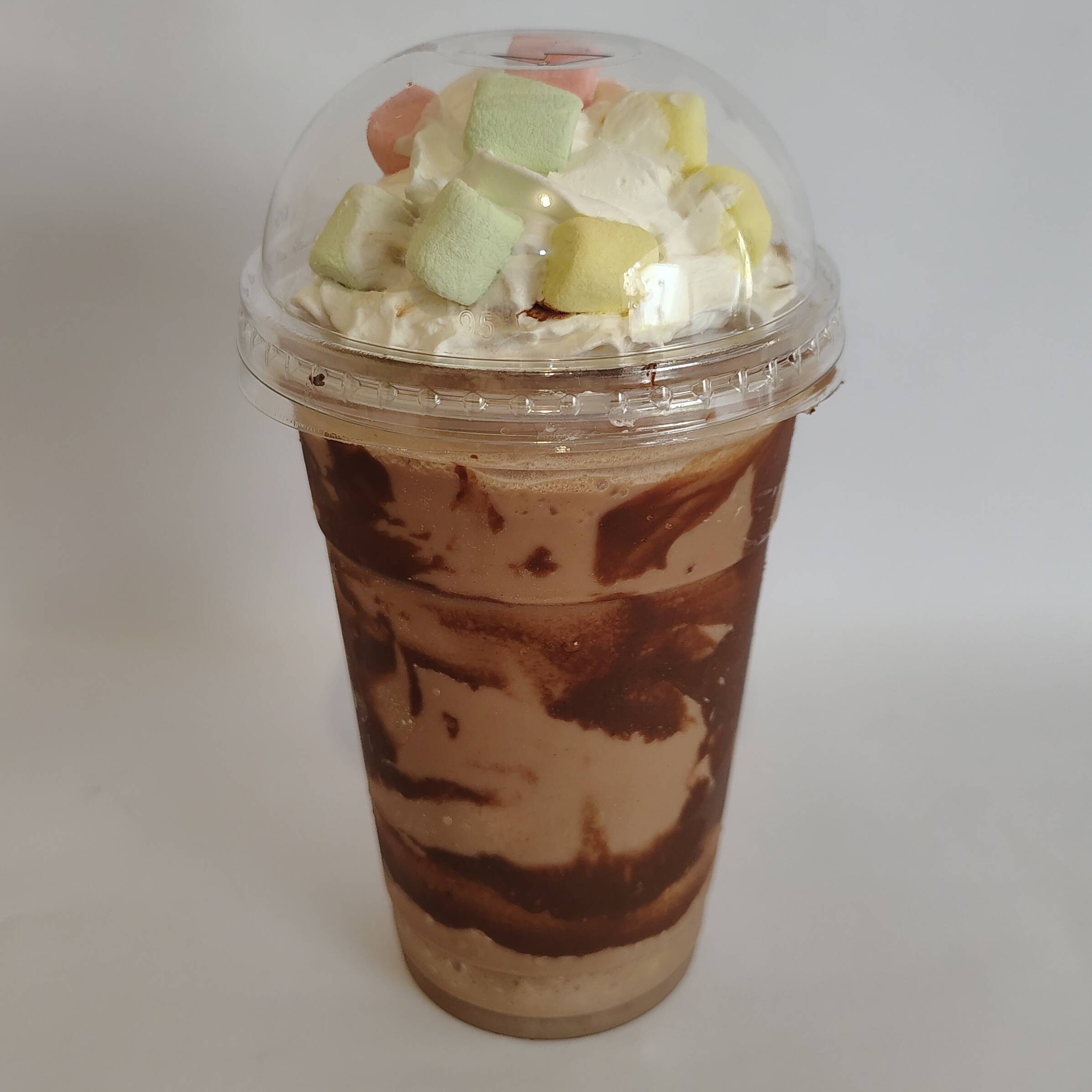 Frappé de Sabor Coco deslactosado decorado con crema batida y malvaviscos 475ml