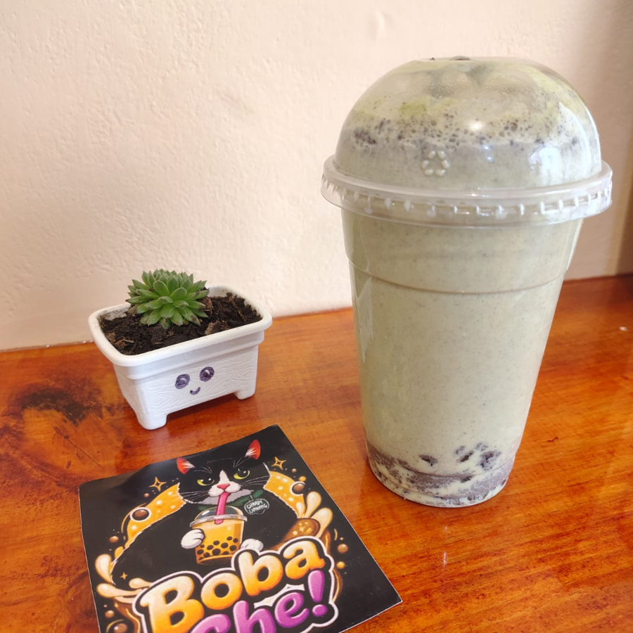 Bebida a base de leche deslactosada sabor matcha y galletas oreo con perlas de Tapioca
