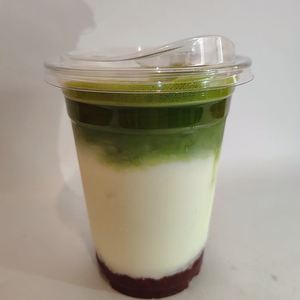 Matcha radicional con leche deslactosada y mermelada de fresa casera 475ml
