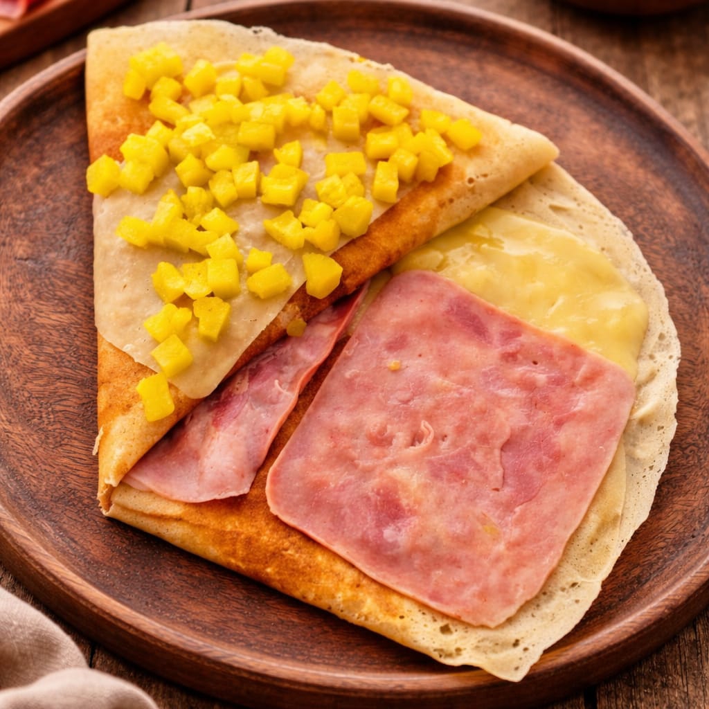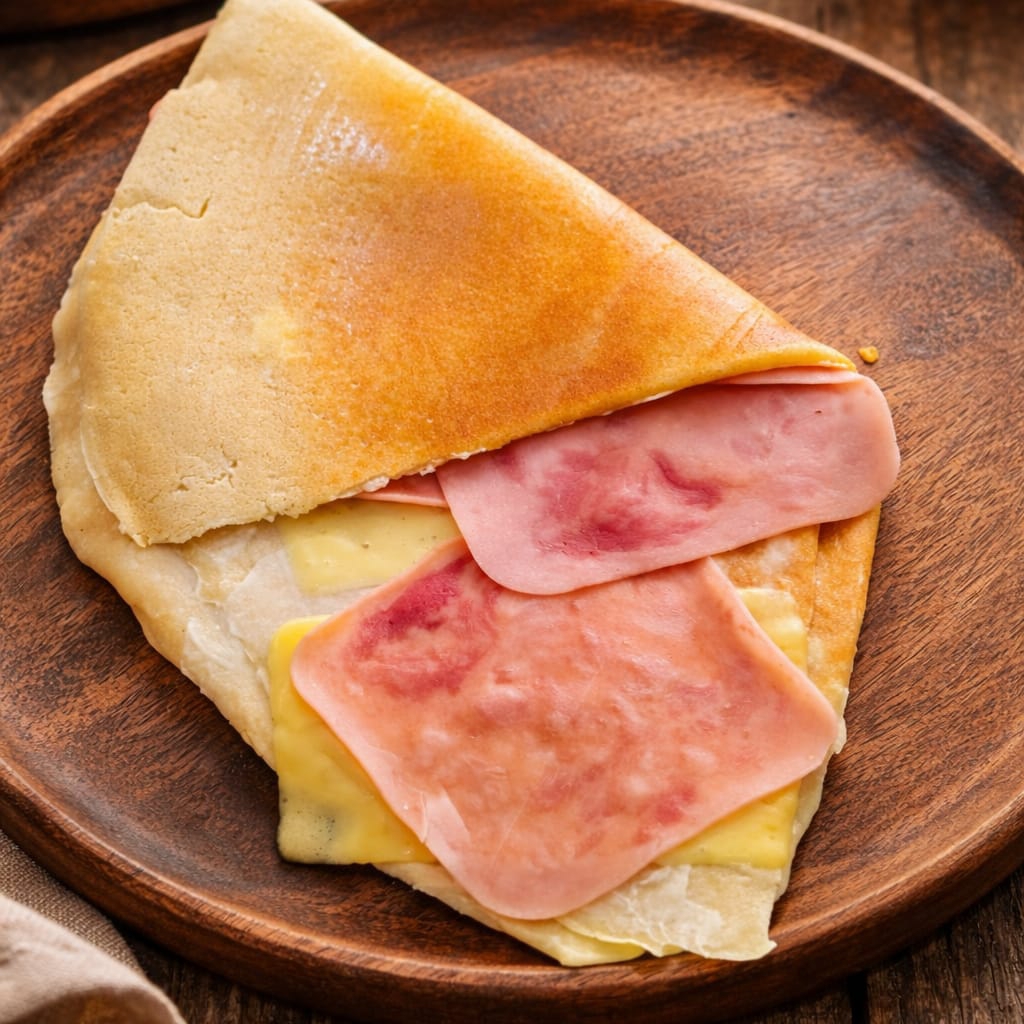 Crepa con queso crema philadelphia, gouda, jamón de pavo