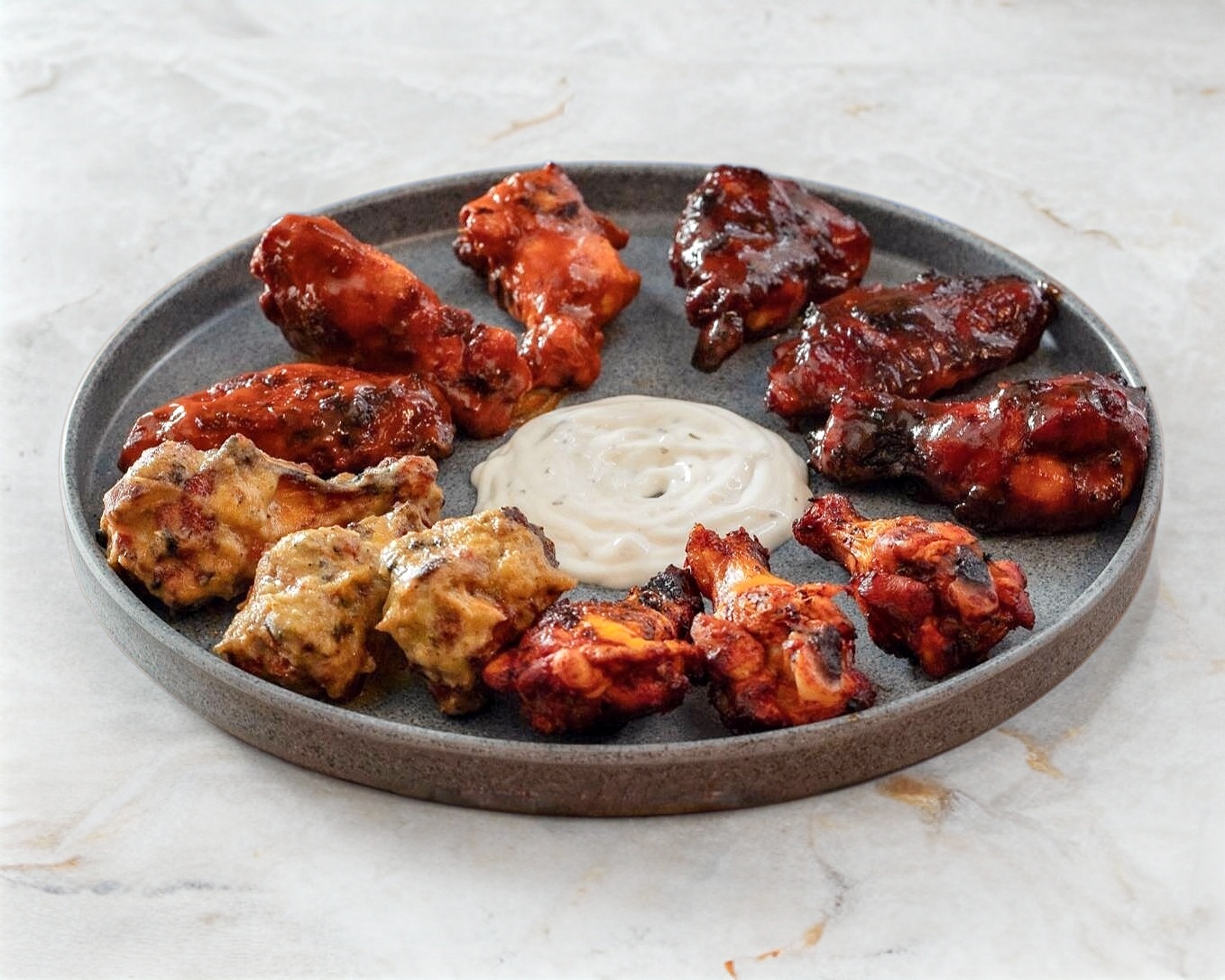180 gr de papas en forma de gajo sazonadas, acompañadas de salsa búfalo.