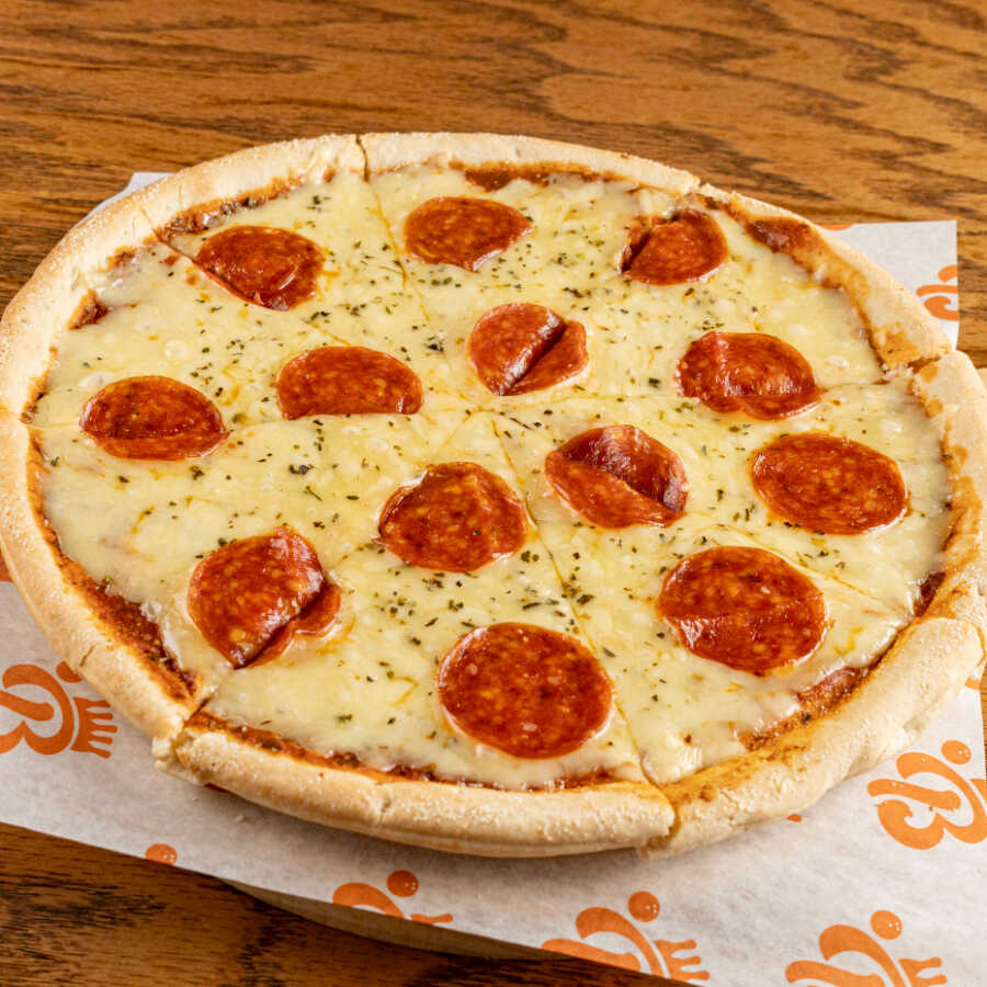 Base de salsa de tomate, una capa de queso gouda con chorizo argentino, pepperoni y chile morrón.