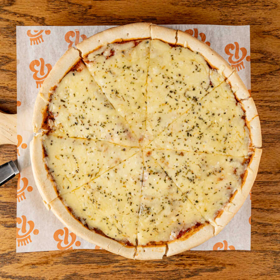 Base de salsa de tomate, con queso cheddar y queso gouda.