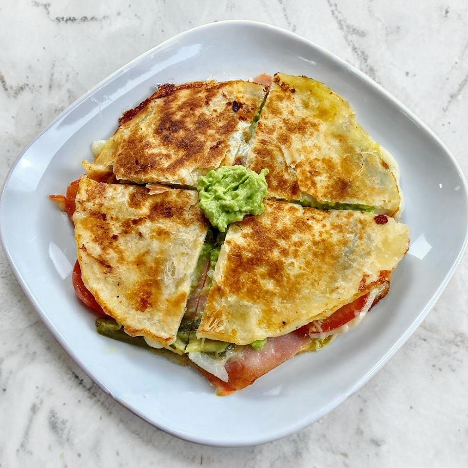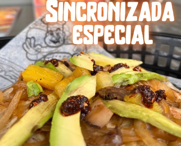 Jamón doble, queso oaxac, queso americano, aguacate y cebolla caramelizada