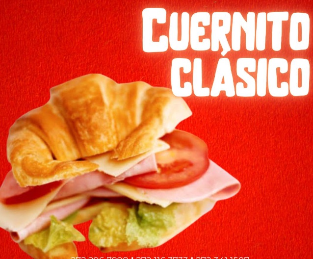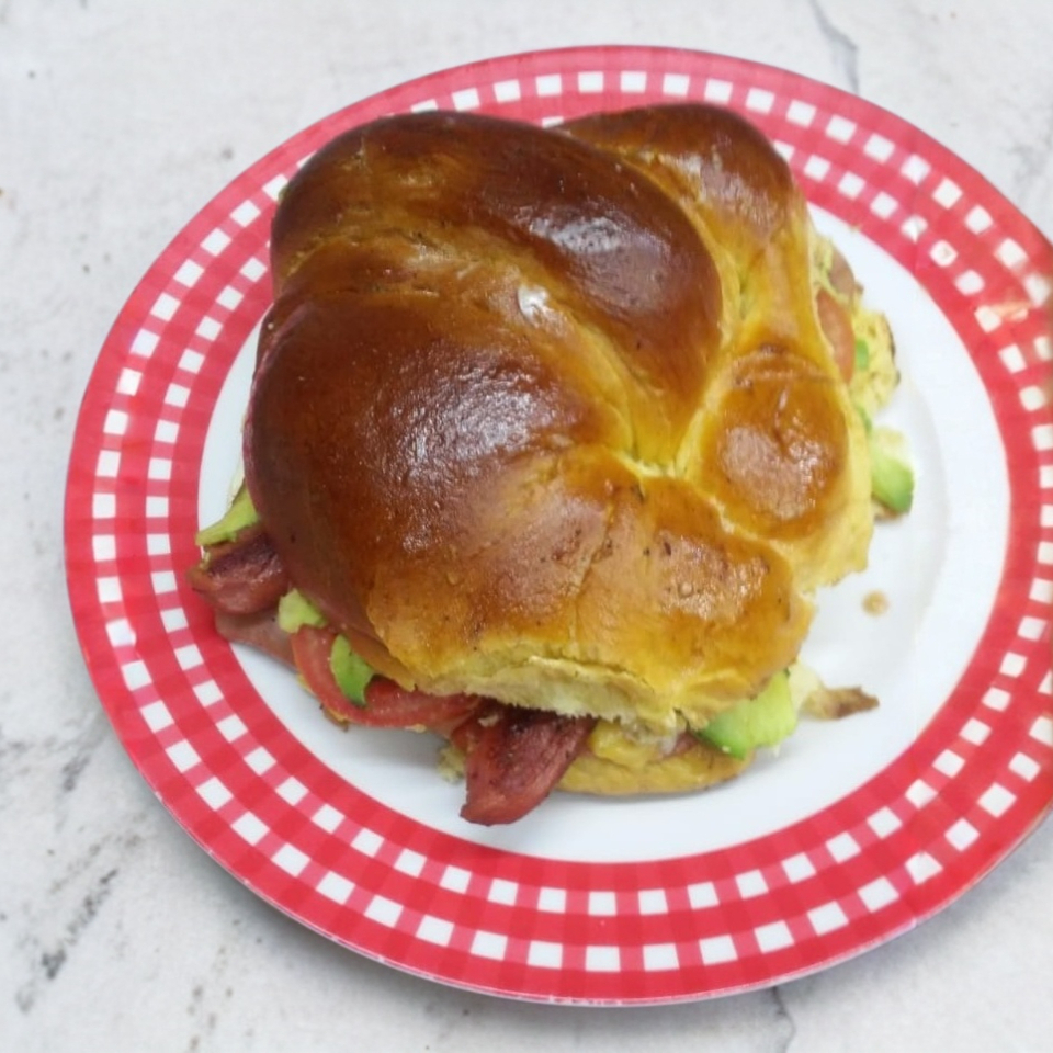Pan relleno con doble jamón, queso, aguacate y carne de res.