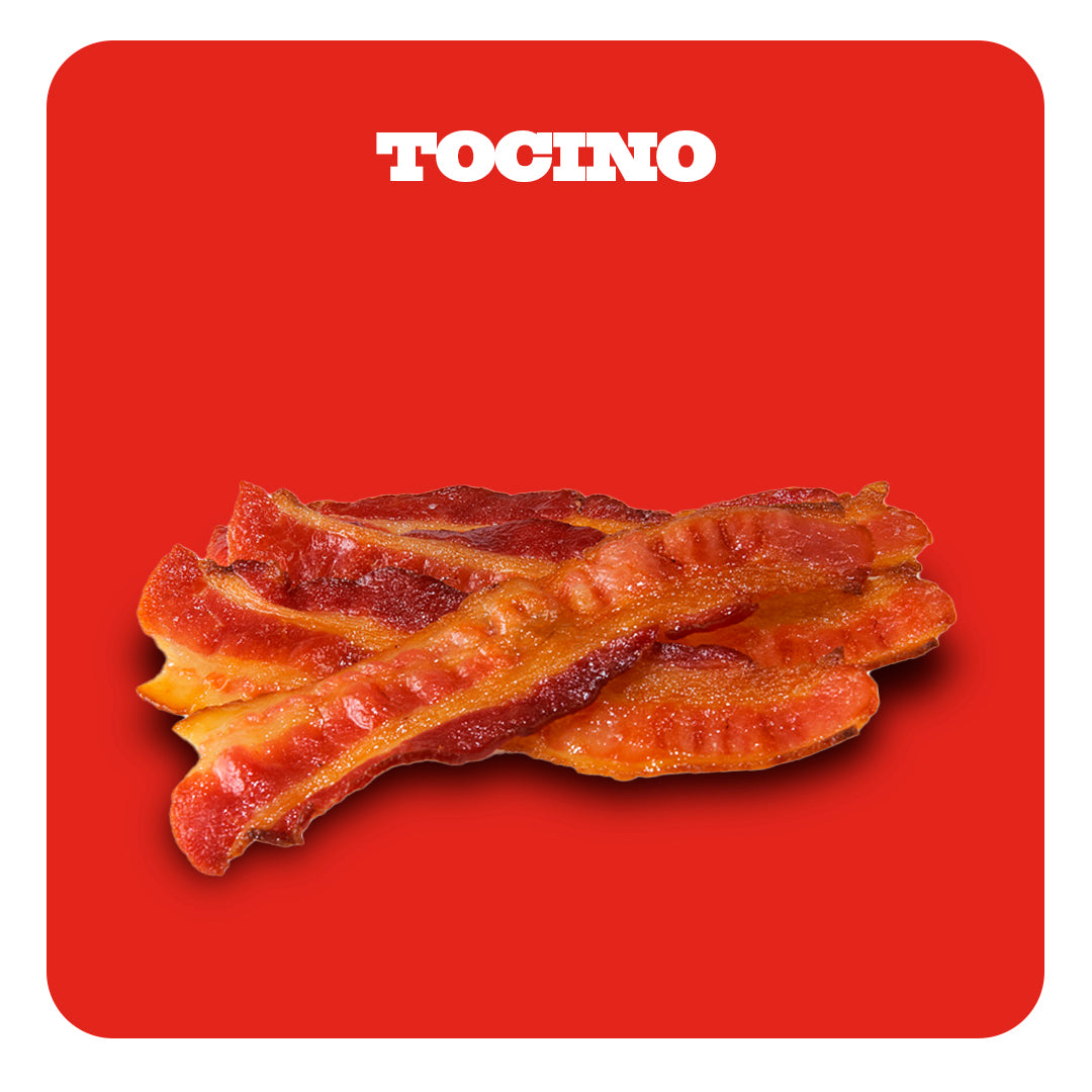 Doble rebanada de jamón, queso manchego, queso oaxaca, salchicha, carne de hamburguesa, piña o champiñón, aguacate, tomate, cebolla.