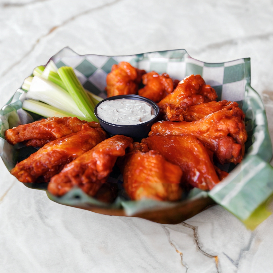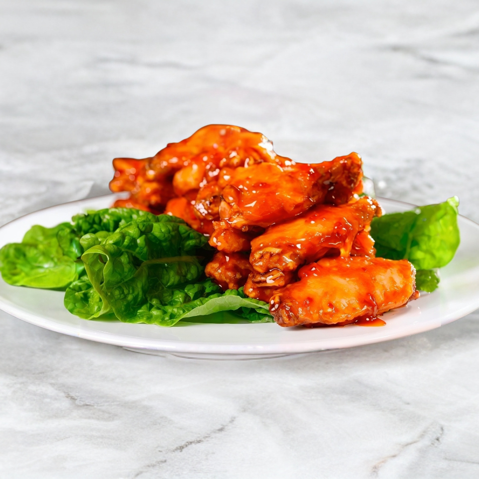 Carne, aderezos, vegetales, tocino ahumado, queso manchego.