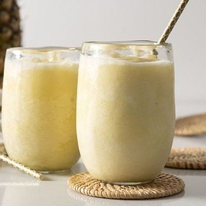 Jugo de piña, sabor coco y hielos