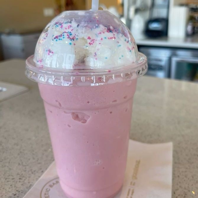 16 OZ, taro y leche texturizada
